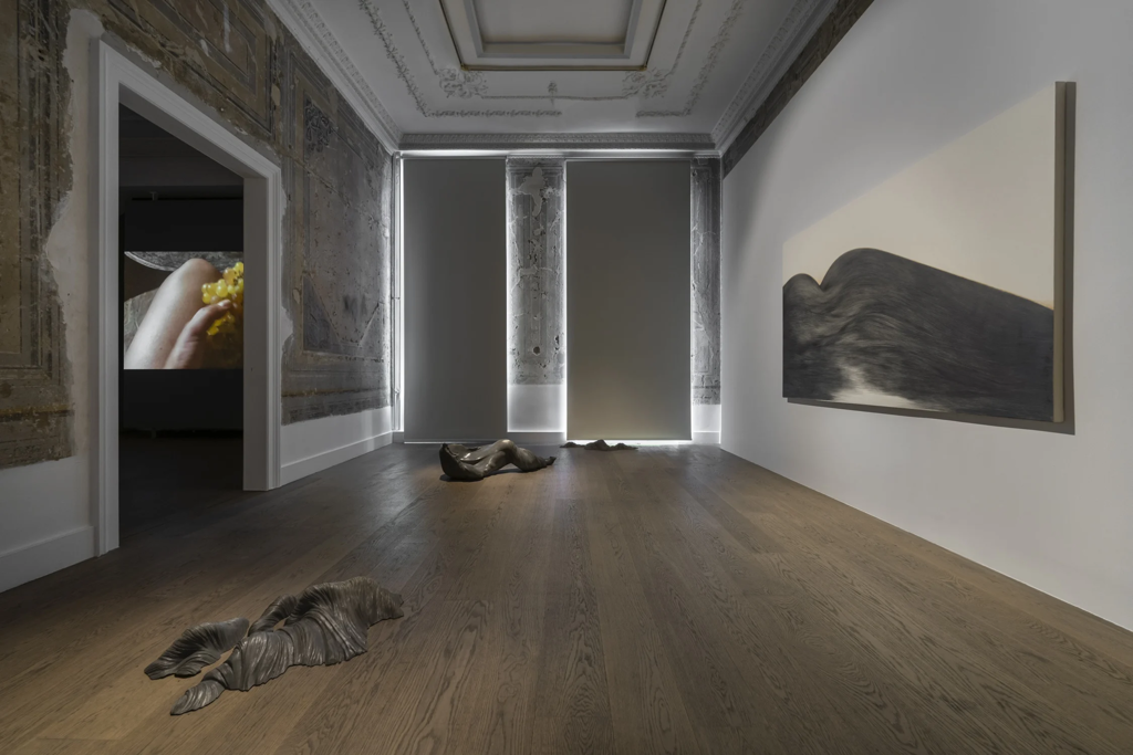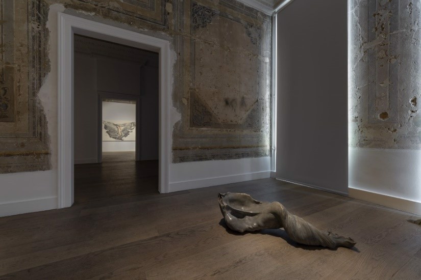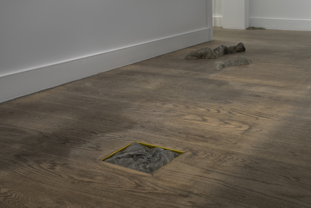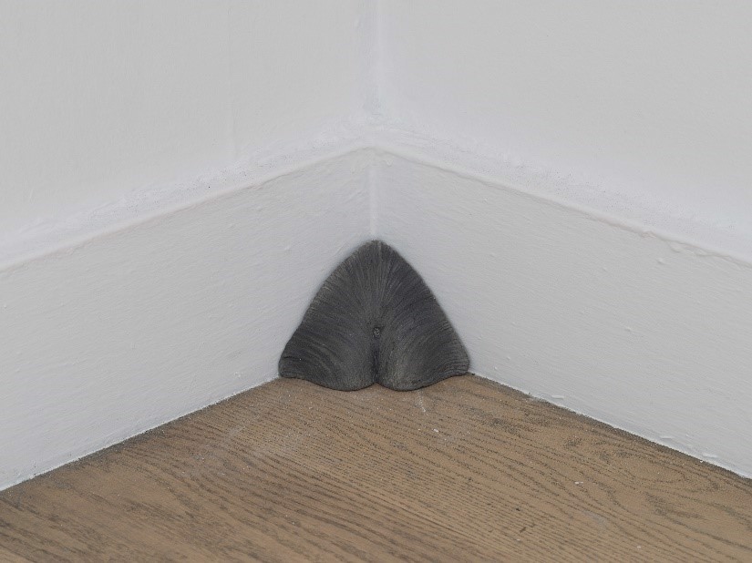 Telgeren’in sergisini zeminle birlikte düşünmeye çalışırken (4) numaralı görseldeki “Aslanlar”a da değinmek gerekir. Telgeren sergi mekânında farklı köşelerine yerleştirdiği “Aslanlar” için Kibele ve ona eşlik eden aslan figürlerden ilham aldığına yazının girişinde belirtilmiştir. Sanatçı, Anlam de Coster ile sergiye ilişkin gerçekleştirdiği söyleşide “Aslanlar” işi için Joseph Beuys’un köşelerinden de ilham aldığını ifade etmiştir. Telgeren aynı söyleşide “Aslanlar” işinden bahsederken köşelerin yuvarlaması fikrini de dile getirir. Joseph Bueys’un “Aslanlar”a ilham olan işi “Fat Corner”[24]dır. Beuys’un bu yerleştirmesi mekânın bir köşesine yığılmış yağdır. Yağ, Beuys’un işlerinde sık olarak kullandığı bir malzemedir. Yağı malzeme olarak tercih etmesi bedenle ilgili olması ile bağlantılıdır. Onun mekânın köşesine yağ ile yaptığı bu yerleştirmeyle mekânı ona has olan bir şekle, ona ait bir çevreye dönüştürdüğü yorumları mevcuttur.[25] Telgeren’in de “Aslanlar” işiyle mekânı dönüştürmesi söz konusudur. Ancak sanatçının zemini kendine ait bir çevreye dönüştürme çabasında olduğunu söylemek yerinde olmayacaktır. Telgeren’in bu işine ilişkin vurguladığı “köşelerin yuvarlaması” fikri göz önüne alındığında, bu yerleştirmeler daha çok epistemolojisi dışlamalarla yapılandırılarak koşullanan fallokrasinin iktidarının özel bir statü atfettiği dikeyliğe yapılan müdahaleler olarak düşünülmeye açıktır. Böylece sanatçının bu müdahalesi fallokrasinin, dikeyliğin hiyerarşik yapılanmasının temassızlığını askıya almaya ilişkin bir tavır olarak yorumlanabilir. Telgeren’in temas etmeye vurgusunun bir veçhesinin fallokrasinin, dikeyliğin hiyerarşik yapısının sebep olduğu temassızlıktan da sıyrılma arzusu olarak düşünülebileceğini ifade etmek de mümkündür.