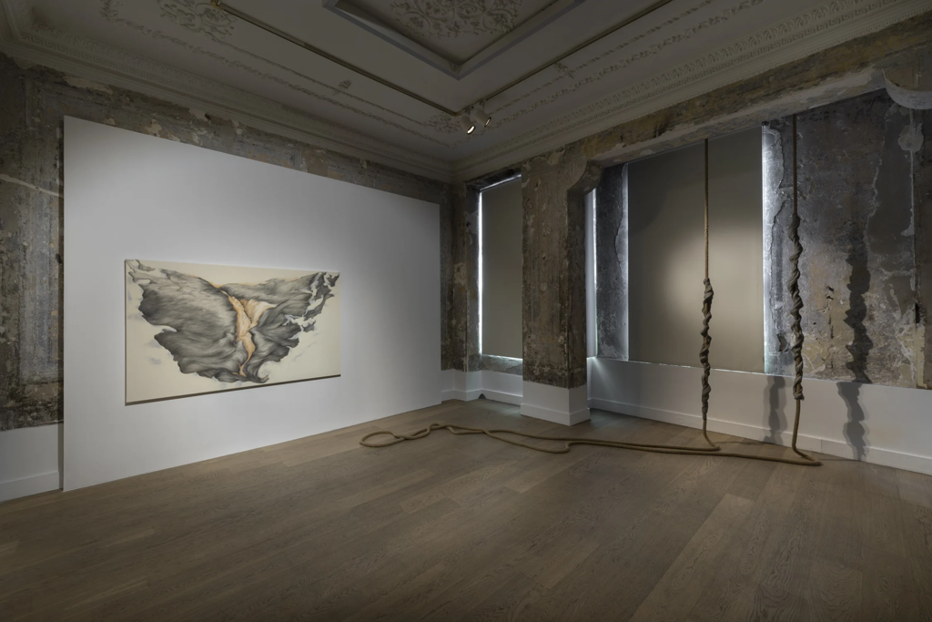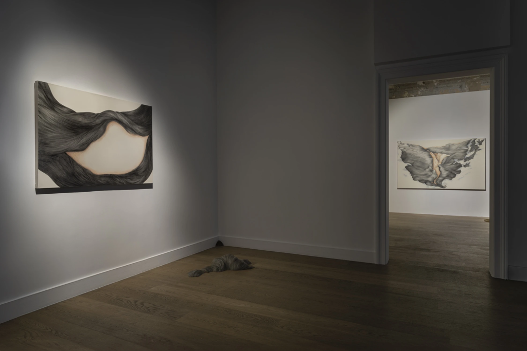 Ayça Telgeren’in Kırık Ufuk sergisi 7 Mart-27 Nisan 2024 tarihleri arasında Galerist’te gerçekleşti. Sanatçı, sergisine ilişkin 4 Nisan 2024 tarihinde Anlam de Coster ile gerçekleştirdiği söyleşide[1], sergide yer alan heykellerden bahsederken, heykel yapmak için ayağa kalkmış olmanın ona iyi geldiğini ifade etmiştir. Telgeren, kağıtla çalışırken yatay durumda olduğunu[2] ve heykel için ayağa kalkmış olmanın kendi üretimine ilişkin daha farklı bir deneyim imkanını mümkün kıldığını belirtmiştir. Sanatçı yine sergiye ilişkin bu sefer Selin Tamtekin ile gerçekleştirdiği söyleşide, işlerini mekâna çerçevesiz olarak yerleştirdiğini çünkü mekânın içinde çıplak ve korunmasız kalmalarını istediğini söylemiştir.[3] Telgeren, sergide süpürgeliklerin iç kesimlerine yerleştirdiği (5) numaralı görseldeki “Aslanlar” işinin esin kaynağının Ankara’daki Anadolu Medeniyetler Müzesi’nde görmüş olduğu ana tanrıça Kibele ve ona eşlik eden aslan figürleri olduğunu eklemiştir. Aynı söyleşide Kırık Ufuk sergisinde mekânı bir beden gibi kurgulayıp ona birden çok katmanda temas etmesini arzuladığını ve serginin her yerde dolaşmasını, yerden başlayıp tavana kadar tırmanmasını istediğini dile getirmiştir. Sanatçı sergisinde öne çıkan işlerinde kendini gösteren saç formuna da Tamtekin ile gerçekleştirdiği söyleşide değinmiştir. Telgeren, Çerkezlerde saçın çok önemli olduğunu, Çerkezlerin güzel koyu renk saçları ile ünlü olduğunu belirtmiş ve (9) numaralı görseldeki “Sabah Bakış”ı işini yapmaya başladığında uzun süre önce kaybettiği babaannesinin saçlarını aklına geldiğini ve desenin onun saçlarına benzer bir form aldığını söylemiştir. Bu yazının sanatçının sergisi ve sergisi üzerine ifadeleriyle birlikte nerelerde gezinmeyi arzuladığını ifade etmeden önce Nazile Kalaycı’nın Batı Metafiziği’ne hâkim epistemolojiye ilişkin işaret ettiklerine değinmek faydalı olacaktır.