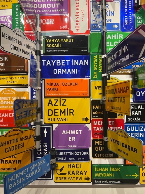 Klipteki yanar dönerli, plastik süsler, beyaz sandalyeler, ucu fırfırlı etekler, yakası açık gömlekler ile sergideki lastik ayakkabılar, rengarenk sokak tabelaları geçmişin çarklarında öğütülüyor. Kısa bir mola için Feshane’ye uğrayan İstanbullunun tüketimine sunulan, cinayetlerin ve kayıpların kuşattığı bir toplumun hafızası nasıl oluyor da nostaljik bir düğün klibini andırıyor? Geçmiş, bir aile albümündeki fotoğrafın kenarında kalmış, diğer fertlerine göre daha eğreti duran bir evlatlığa nasıl dönüşüyor? Utancın ve suçun yüzümüze vurulmadığı bir geçmiş nasıl fütursuzca takdir topluyor? Sergi metni uzun, devam ediyor: “yıkıntılardan doğan bir estetik.. mitlere içkin anlatım olanakları.. örme ve çözme döngüsünün pratiğine bir gölge gibi.. soyu tükenmiş diller.. kayıp alfabelere dair hassasiyet..” Dance automatik, electronic, cybersonic, systematic.