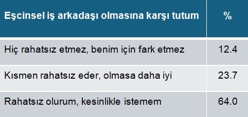 Gençlere, çalıştıkları yerde farklı kimlikten kişilerin varlığına tepkilerini de sorduk. Eşcinsel bir arkadaştan rahatsız olmayanlar sadece %12.4.