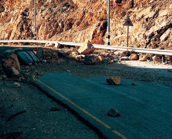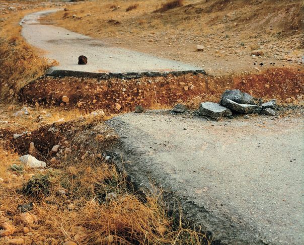 Batı Şeria üzerine de işler üretmiş olan Ristelhueber, Bloch’un bedene verdiği önemi ve Fanon’un düşüncesine zemin üzerinden yaklaşmayı akla getirir bir şekilde bedenlerin ve arazilerin (toprakların) aynı şey olduğunu söyler.[44] Sanatçı kariyerinin en başından beri işlerinde alan, bölge, jeopolitika, toprak, arazi, savaşlar ve onların hikayelerine, görsel ve kavramsal olanın, kurgu ve gerçek olanın birbirine geçtiği bir üslupla yer vermiştir. Bu bağlamda objektifini 1989 yılında Ermenistan’a, 1997 yılında Türkmenistan’a, 1999 yılında Suriye’ye, 2000 yılında Irak’a, 2003-04 yıllarında Batı Şeria’ya çevirmiştir. Jacinto Lageira’ya göre Ristelhueber modern işlevselliğin ve bedenlerin kırılganlığının manzaranın sükûnetinde yıkıldığı bir dipsizlik deneyimini gösterir. Lageira sanatçının kendi görselleri ile Reuters’dan aldığı görselleri birleştirerek oluşturduğu On bir Patlama işinde yer alan yıkıntıların, deşilmiş bombalanmış arazilerin, oyulmuş patlatılmış zeminin ölümün farklı görünüşleri olduğunu ifade eder.[45] Henric Gustafsson ise Ristelhueber’in işlerinde karasal ve bedensel olana yayılan yaraların, sakatlanmaların yinelenen izlerinin yapılanmasını odağına aldığını ifade eder. Viraneler, yaralanmış bedenler, çukurlaştırılmış çökertilmiş araziler onun işlerinin asli unsurlarıdır. Ona göre Ristelhueber’in işlerinde suret ve zemin, anatomi ve arkeoloji, bedensel ve topraksal olan arasında durmak bilmeyen bir geçişlilik vardır. Bu nedenle işleri genellikle çiftler halinde ortaya çıkar. Örneğin Körfez Savaşı’nın Kuveyt’te zemine verdiği fiziksel hasarlara odaklandığı Fait (1992) işi, Balkanlardaki iç savaşta yaralanan insanların bedenlerinin devasa fotoğraflarından oluşan Every One (1994) işini takip eder. Körfez Savaşı’nın Kuveyt’te oluşturduğu zik zak hendeklerinin havadan görüntülerinin yer aldığı Fait işi, yeni cerrahi dikişlerin, yakınlaştırılmış büyütülmüş görüntülerinden oluşan Every One işinde yankılanır. Sakatlanmalara ve sargılarına, yaralara ve dikişlere aynı dikkati göstermek, onları birbirine lehimler; aslında bedenler ve araziler/topraklar olayların meydana geldiği mevcudiyet olarak aynılaşır. Ristelhueber, mayınlarla dolup taşan Kuveyt arazisiyle bir olmak istediğini dile getirir. Sanatçının araziyle bir olma isteğinin, bedenin de mayınlarla dolup taşması anlamına geleceğini bu nedenle bunun hem bir özdeşleşme hem bir ötekilik haline denk düşeceğini belirtir.