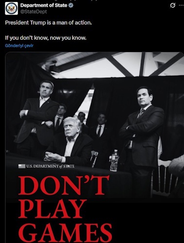 ABD hariciyesi de şu paylaşımı yapmış resmî X hesabından.