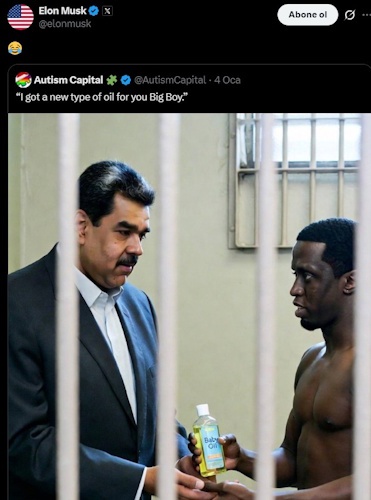 Bu gelişmeler uzun süre konuşulacak ve tartışılacak. Beni asıl düşündüren meseleye geleyim. Bir ülkenin liderinin birkaç saat içerisinde fidye istenmek üzere kaçırılması gibi ülkesinden alınmasının uluslararası kamuoyunda yeteri kadar infial uyandırmamasına değil de Beyaz Saray’ın, ABD Dışişleri’nin ve Elon Musk’ın peş peşe paylaşımlarına bakmayı öneriyorum.