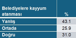 Kayyum atamalarına tepki, (19 Mart'ın öncesi itibarıyla), daha çok DEM Partili siyasetçilerin (PKK ile ilişkilendirilmeleri nedeniyle) cezalandırılması olarak algılandığı için çok yüksek değil. Sokak hayvanları, eşcinseller, göçmenler vb. tartışmalarda çoğunluğun konforunu savunan pozisyonlara yakınlar.